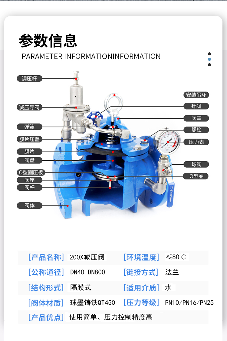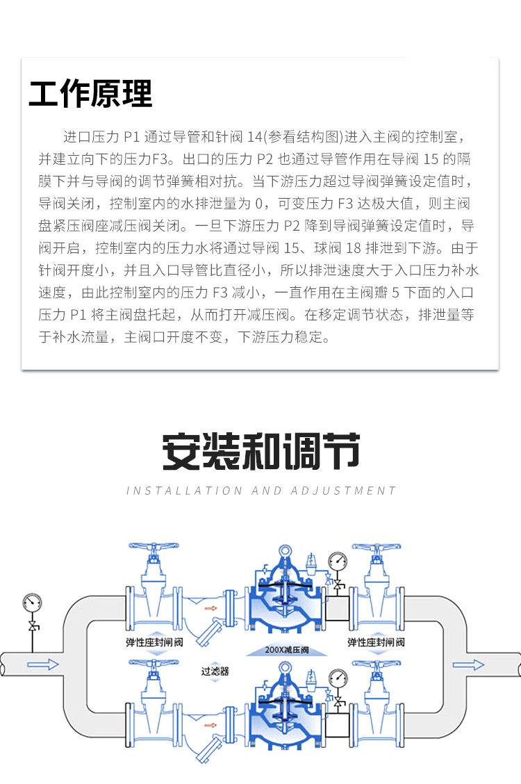 200X可調式先導式減壓閥產品資料介紹 200X可調式先導式減壓閥型號規格